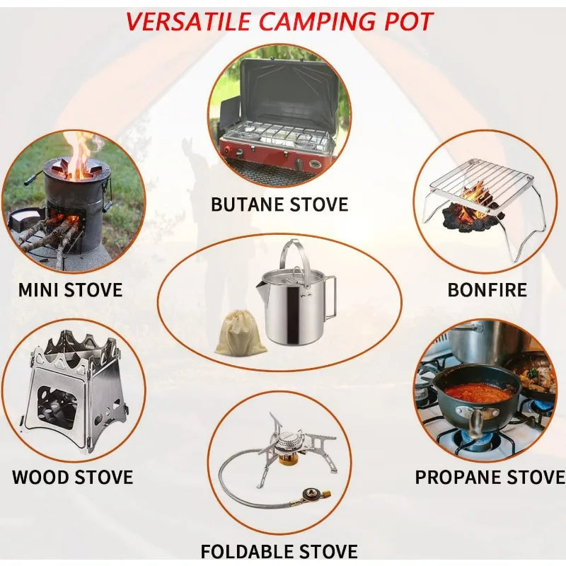 - 3-in-1 outdoor design lets you boil water for tea or coffee, simmer soup or noodles, and even use it as a hanging campfire pot, with a collapsible handle for compact packing.