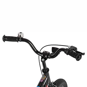 Stable Pneumatic TireThe amazing ride with rubber off-road tires for outstanding grip and stability in any weather conditions and different terrains. | Flexible Riser HandlebarThe handlebar is flexible for kids to steer the riding forward with bike bell. Comfortable grips are soft for kids to steer. Grips are anti-slip, breathable and wear resistant. | Reliable Coaster BrakeThe kids can easily turn the pedal backwards and get stop power. It's a great rear-wheel braking. And kids bike is also equipped with front hand brake. |