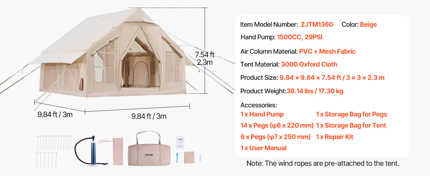 SucceBuy Inflatable Camping Tent With Hand Pump And Bag