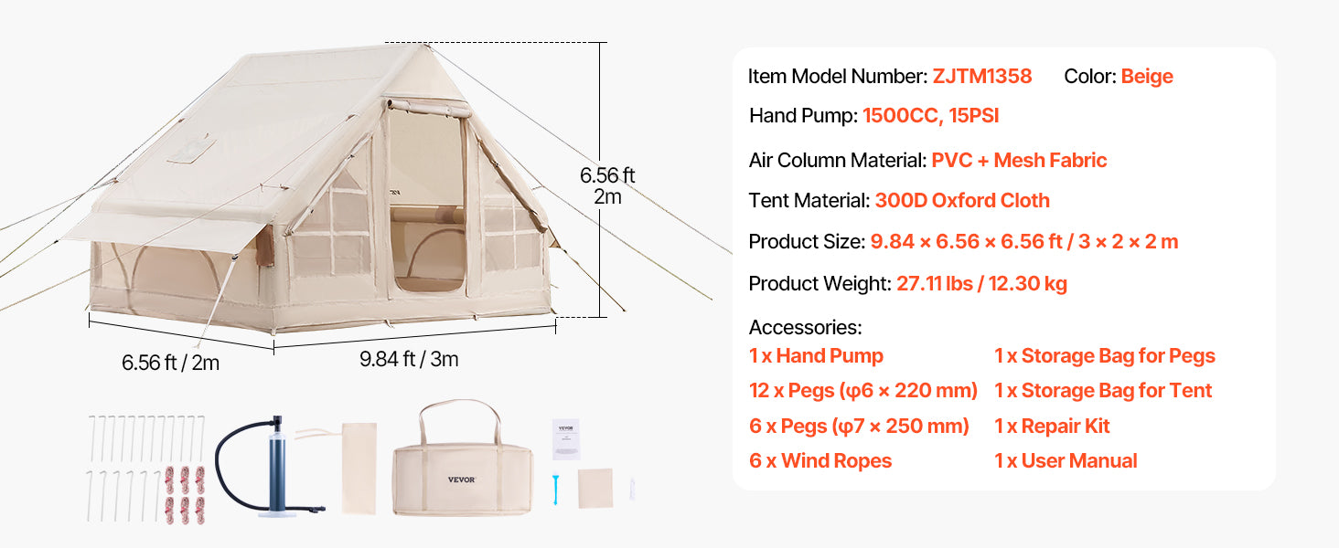 - Set up in 10-15 minutes with the included high-pressure hand pump, and rely on the built-in pressure valve to prevent overinflation and keep air columns stable.